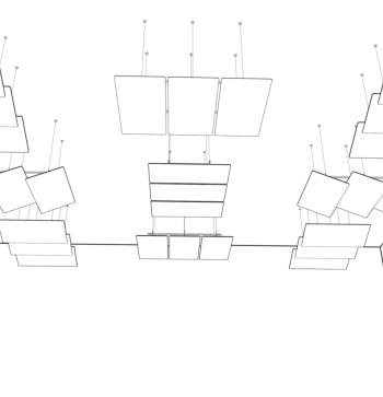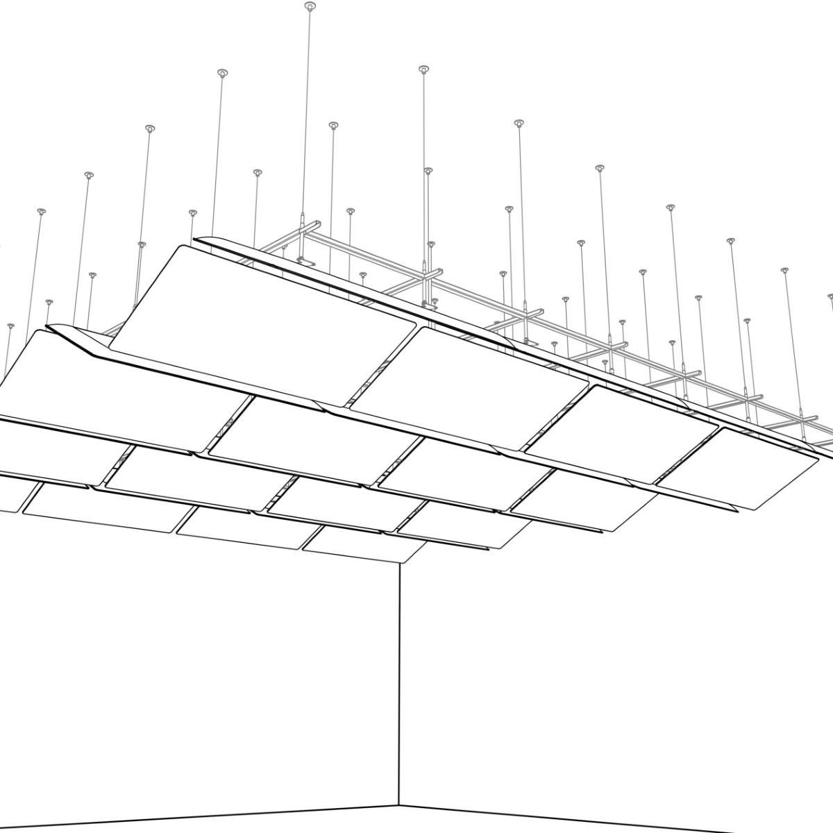 Design Alberto und Francesco MedaModulares Schallabsorptionssystem aus mit snowsound® Technologie hergestellten weißen Paneelen mit ebener Frontfläche. Die essentiellen Linien und die vielen Konfigurationsvarianten ermöglichen die Schaffung von eleganten und funktionellen Lösungen für kleine und große Räume. Am aus verchromtem Stahl bestehenden modularen Rahmen werden Paneele befestigt, die mit Hilfe von Gelenkverbindungen an der Struktur fixiert werden. Die Paneele können waagerecht oder um ihre Hauptachse gekippt positioniert werden, wodurch interessante dreidimensionale Konfigurationen entstehen. Das System ist mit höhenverstellbaren Seilen ausgestattet. Die Neigung der Paneele ermöglicht nicht nur verschiedene gestalterische Konfigurationen, sondern bei Bedarf auch eine Verbesserung der Belüftung und des Lichteinfalls.